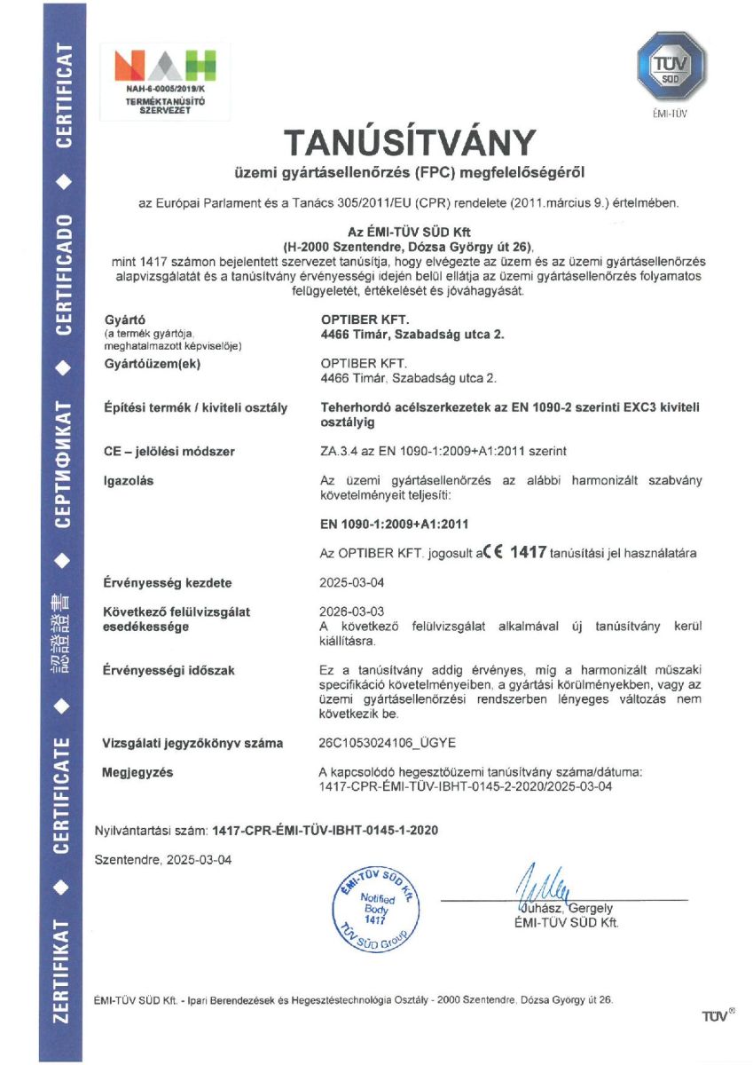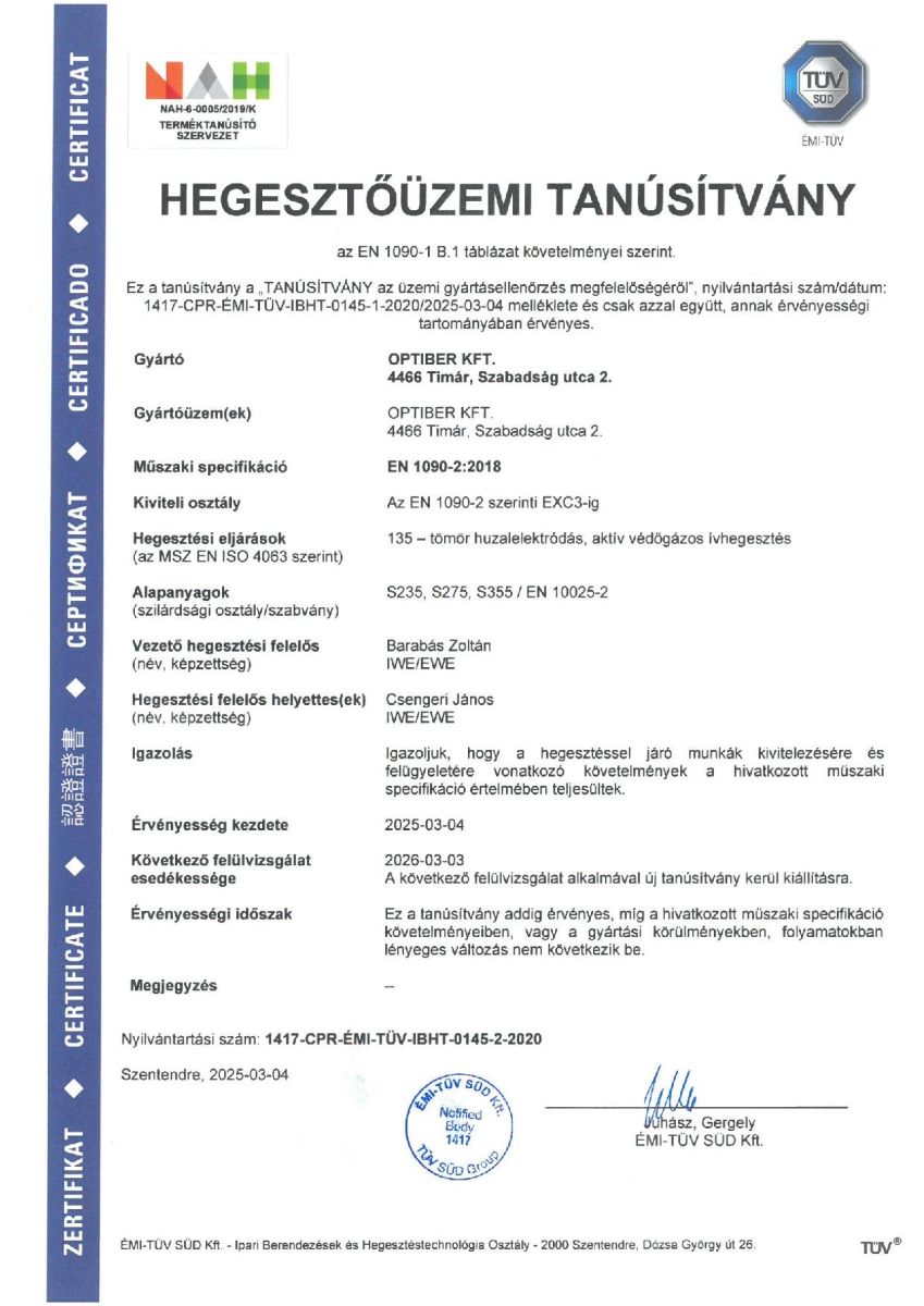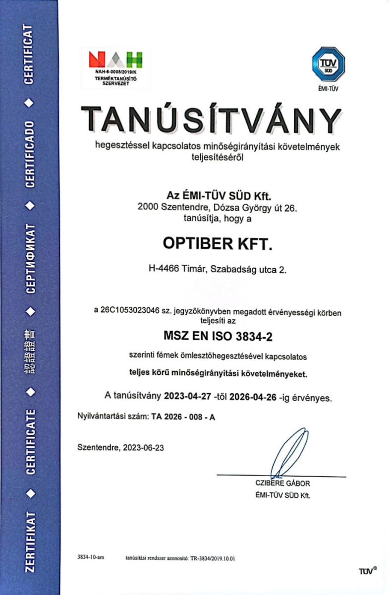 Tanúsítványok