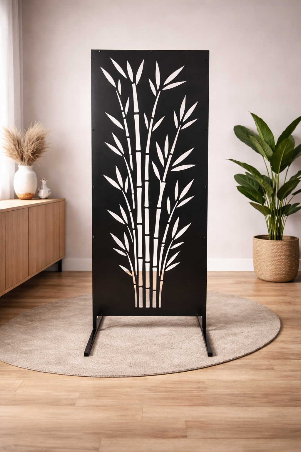A szerkezet stabilitását a 20×20 mm-es zártszelvényből készült masszív keret biztosítja, amely hosszú élettartamot és megbízható tartást garantál. A belső kitöltést 1,5 mm vastag, mintázott acéllemez alkotja, amely nemcsak erős és ellenálló, hanem modern, karakteres megjelenést is kölcsönöz a térelválasztónak.