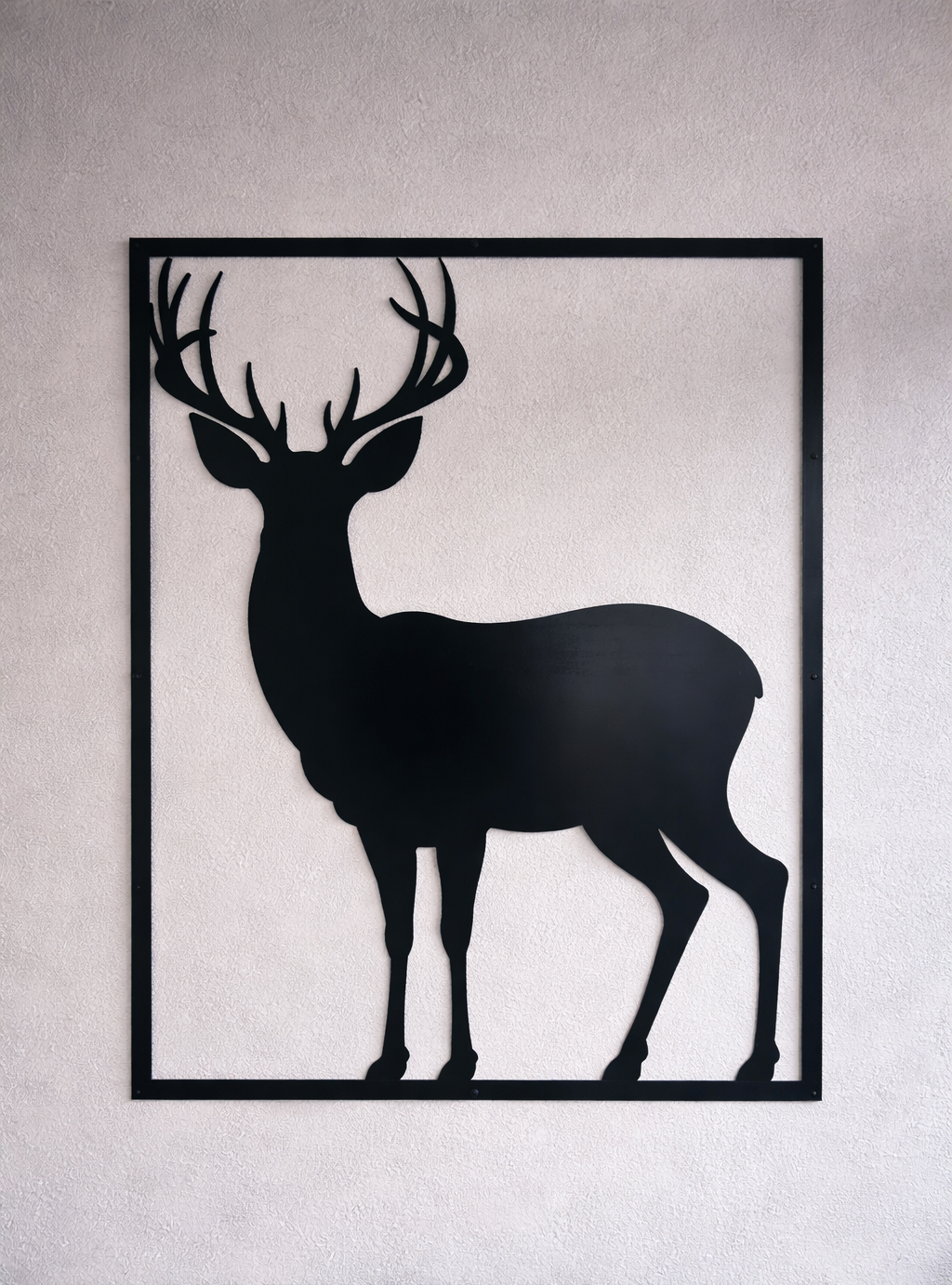 A dekoráció lézervágott acéllemezből (1235 × 930 × 1,5 mm) készül, tartós bevonattal, négy sarkán furattal rendelkezik, ami a rögzítéshez alkalmas.