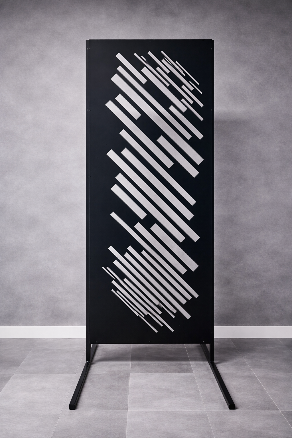 Ez a modern megjelenésű acél térelválasztó ideális választás mindazok számára, akik tartós és esztétikus megoldást keresnek különböző terek elkülönítésére. Letisztult formavilága miatt egyaránt jól illeszkedik ipari környezetbe, irodákba vagy akár otthoni használatra is.